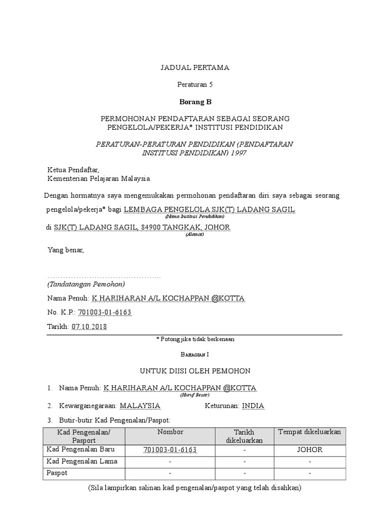 Borang B Memohon Seorang Ahli LPS (HARI) PDF