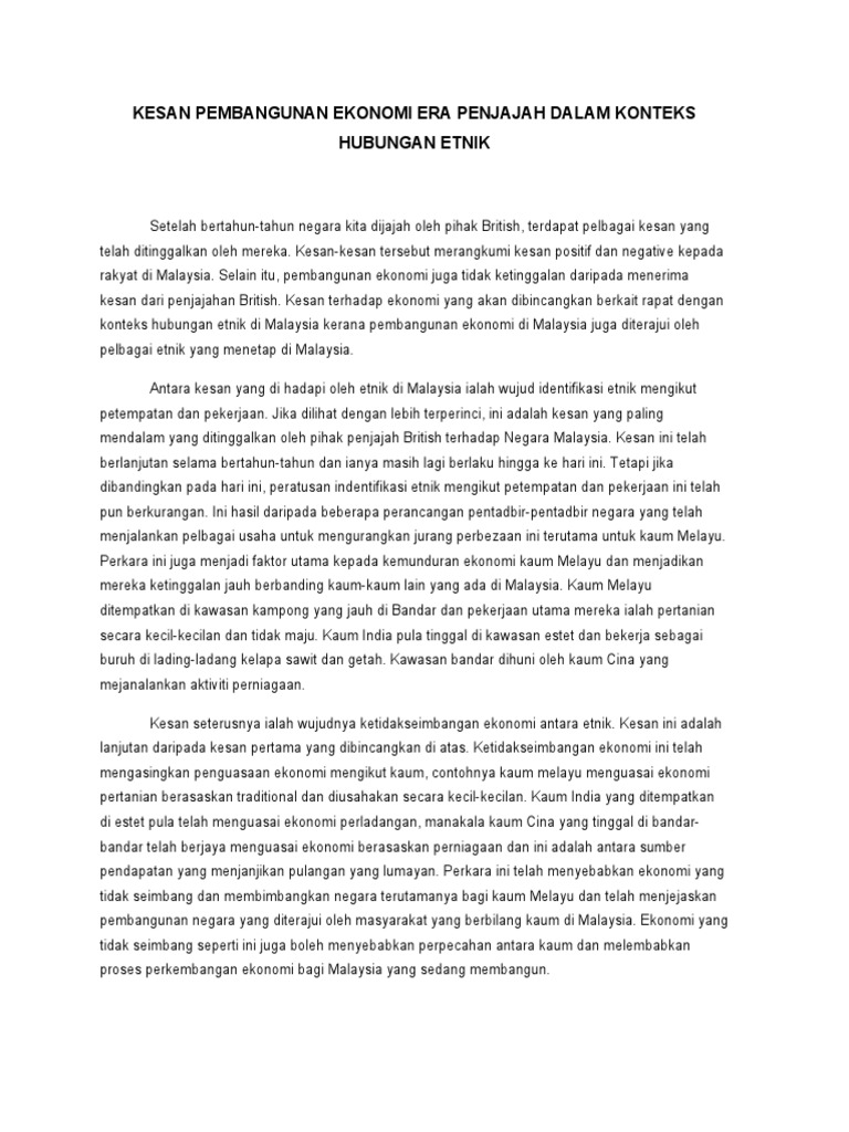 Kesan Pembangunan Ekonomi Era Penjajah Dalam Konteks Hubungan