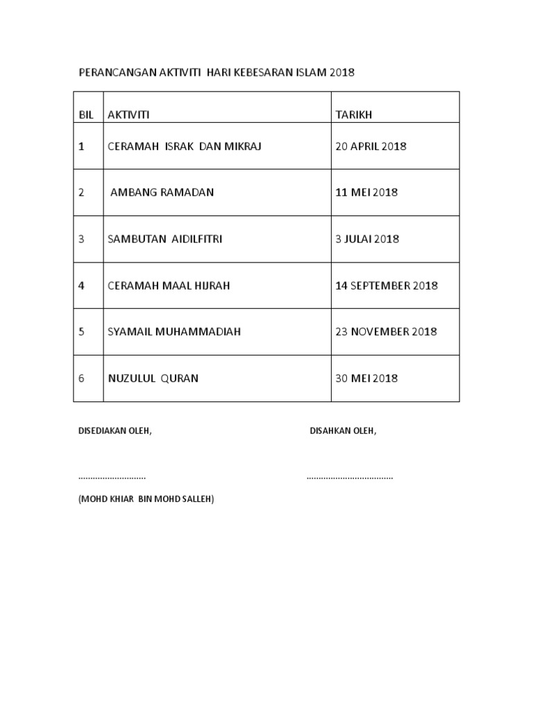 Perancangan Aktiviti Hari Kebesaran Islam 2018 1 PDF
