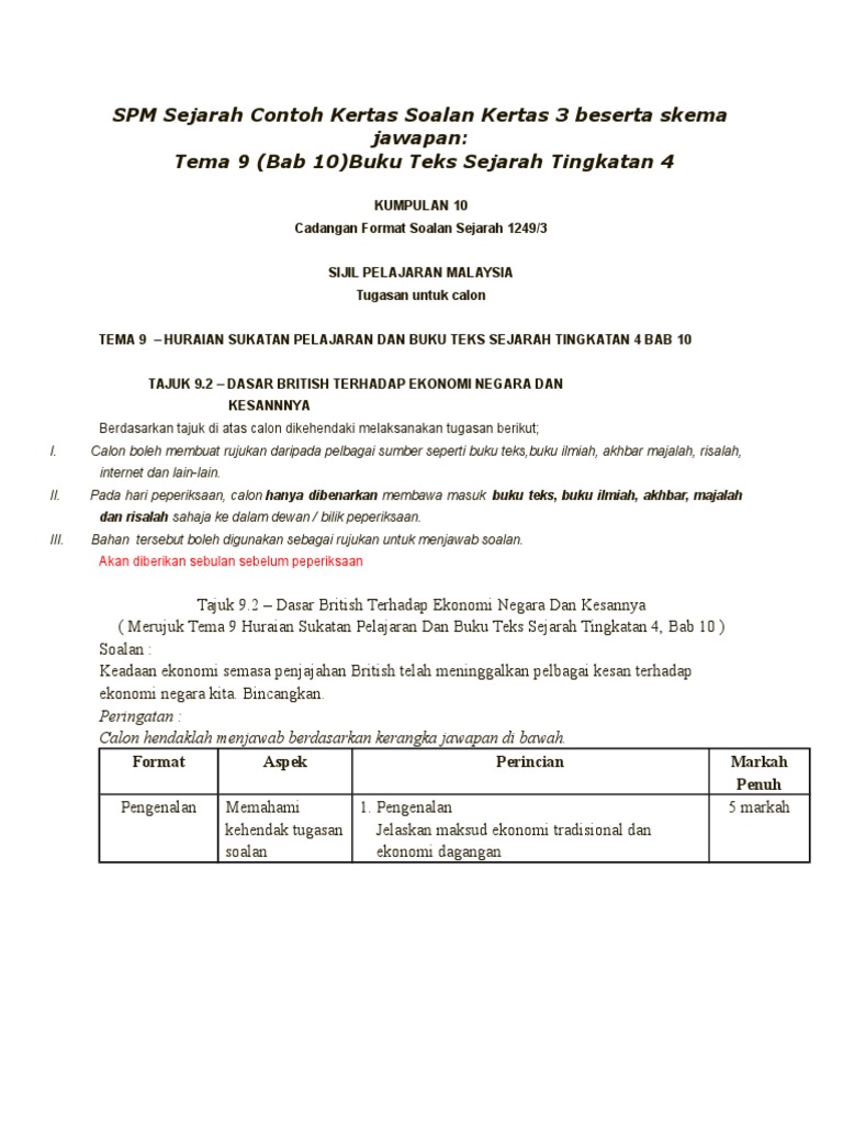 SPM Sejarah Contoh Kertas Soalan Kertas 3 Beserta Skema Jawapan PDF