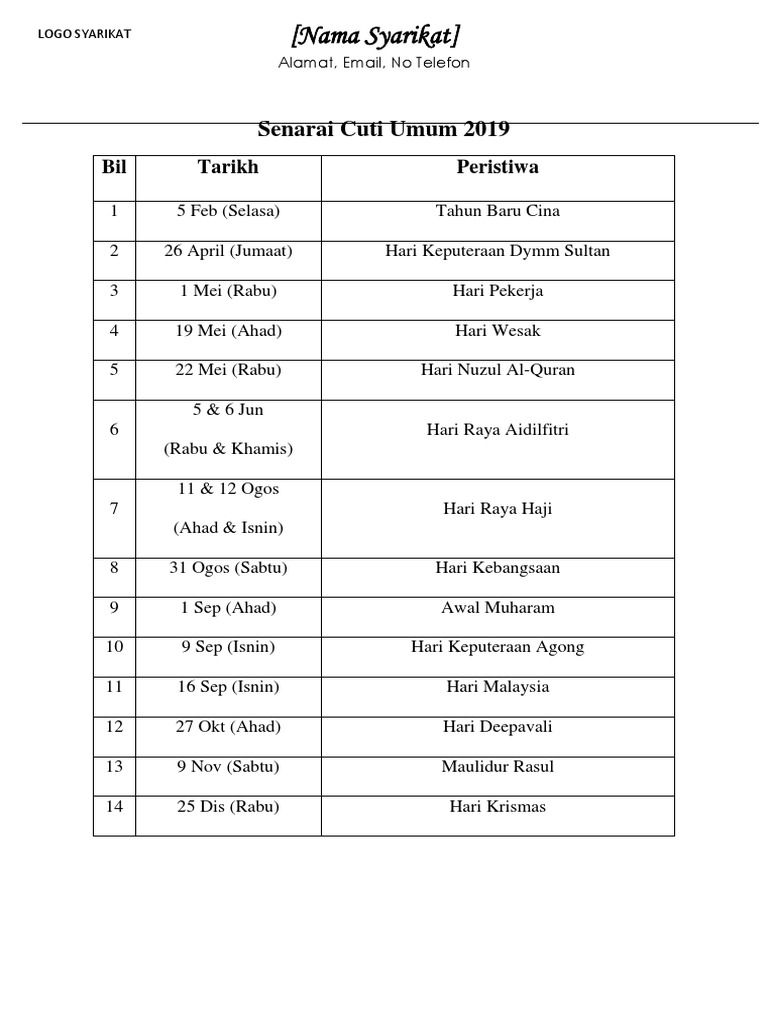 Kalendar Cuti Umum Dan Cuti Sekolah 2019 - GuruBesar.my